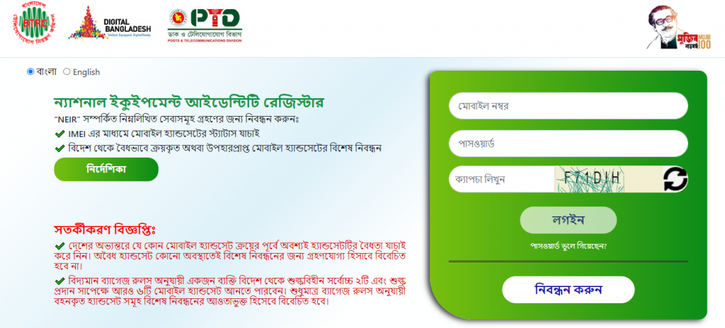 ধাপ-১: neir.btrc.gov.bd লিংকে ভিজিট করে আপনার ব্যক্তিগত একাউন্ট রেজিস্টার করুন।