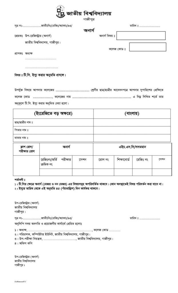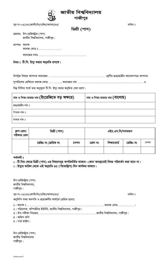 • অনার্স ও ডিগ্রী উভয় ক্ষেত্রে এ TC প্রযোয্য।